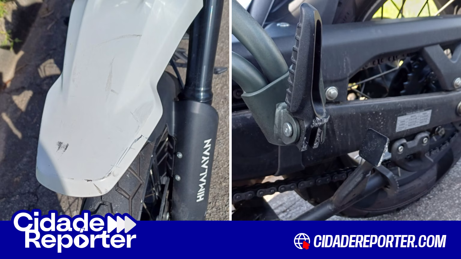 De acordo com o relato, os criminosos chegaram a derrubar a moto durante a abordagem, mas tiveram dificuldade para ligá-la. No momento da ação, a motocicleta caiu ao chão ao menos duas vezes, causando danos ao veículo. A tentativa de roubo foi interrompida com a aproximação de uma viatura policial, o que fez com que os suspeitos fugissem do local.